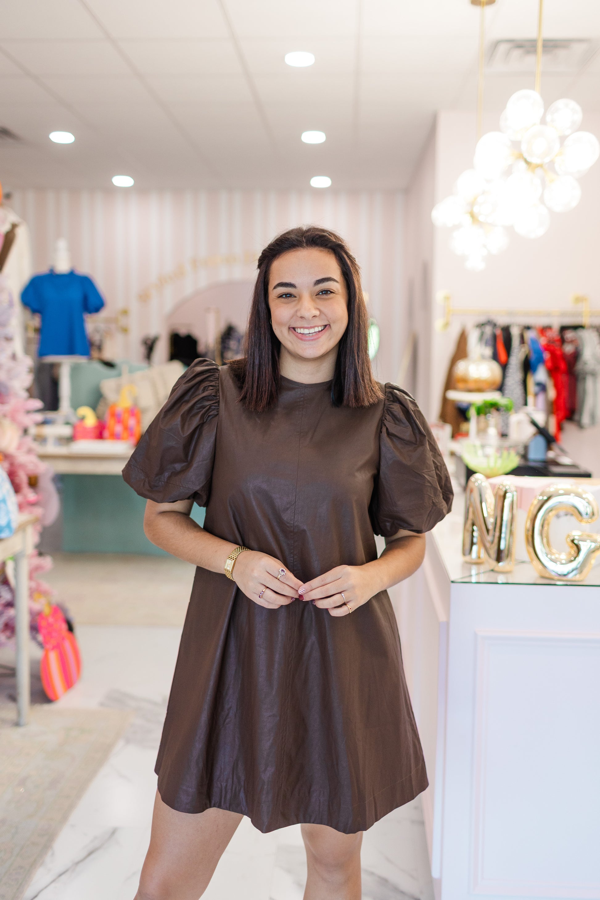 Bold yet feminine, the Cocoa Puff Sleeve Dress makes a statement with its voluminous sleeves and sleek silhouette. Designed in a rich chocolate brown, this piece is both modern and versatile—perfect for pairing with boots for daytime chic or heels for a polished evening look. Lightweight with a structured finish, it’s an easy standout for any occasion.