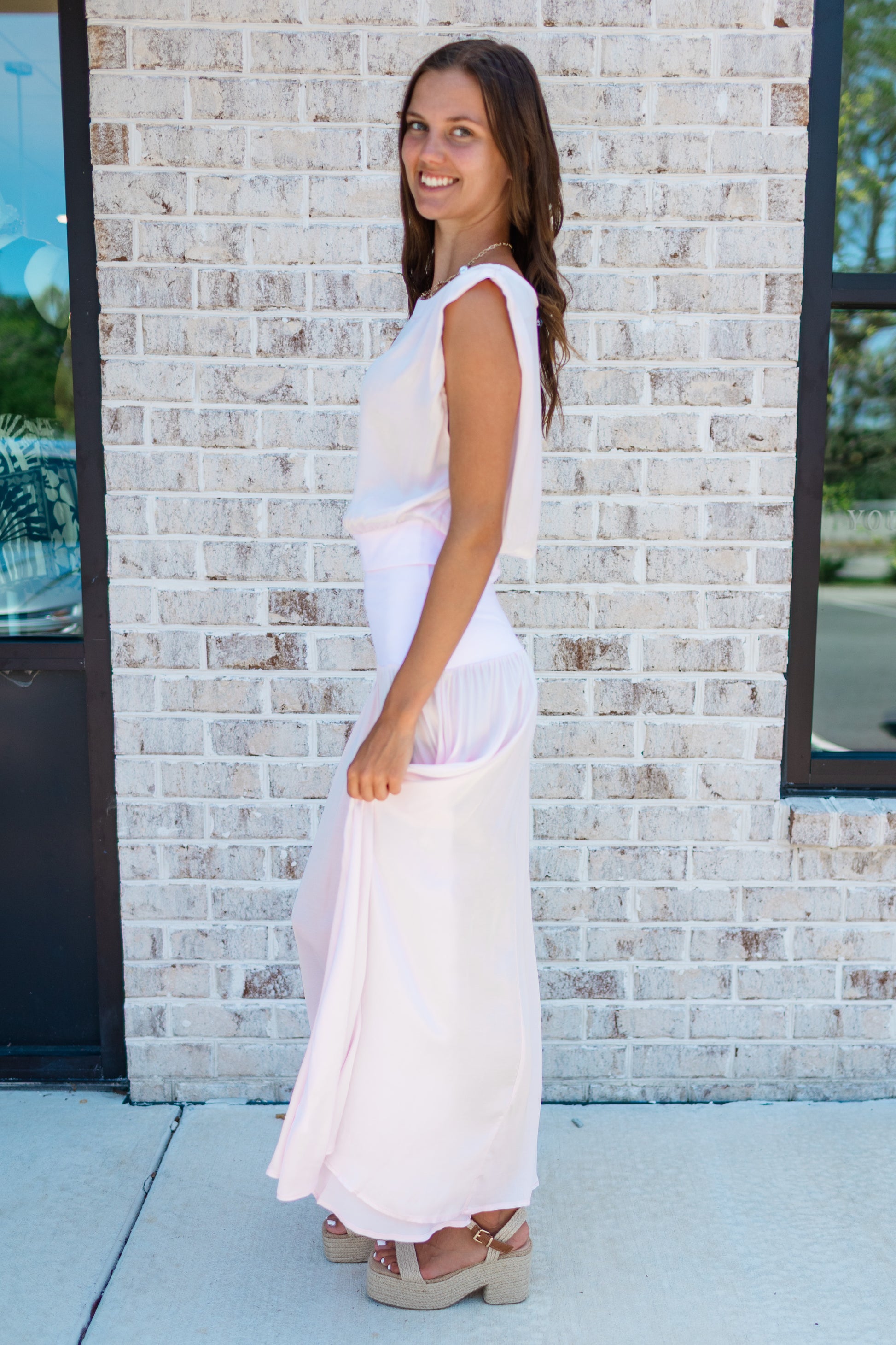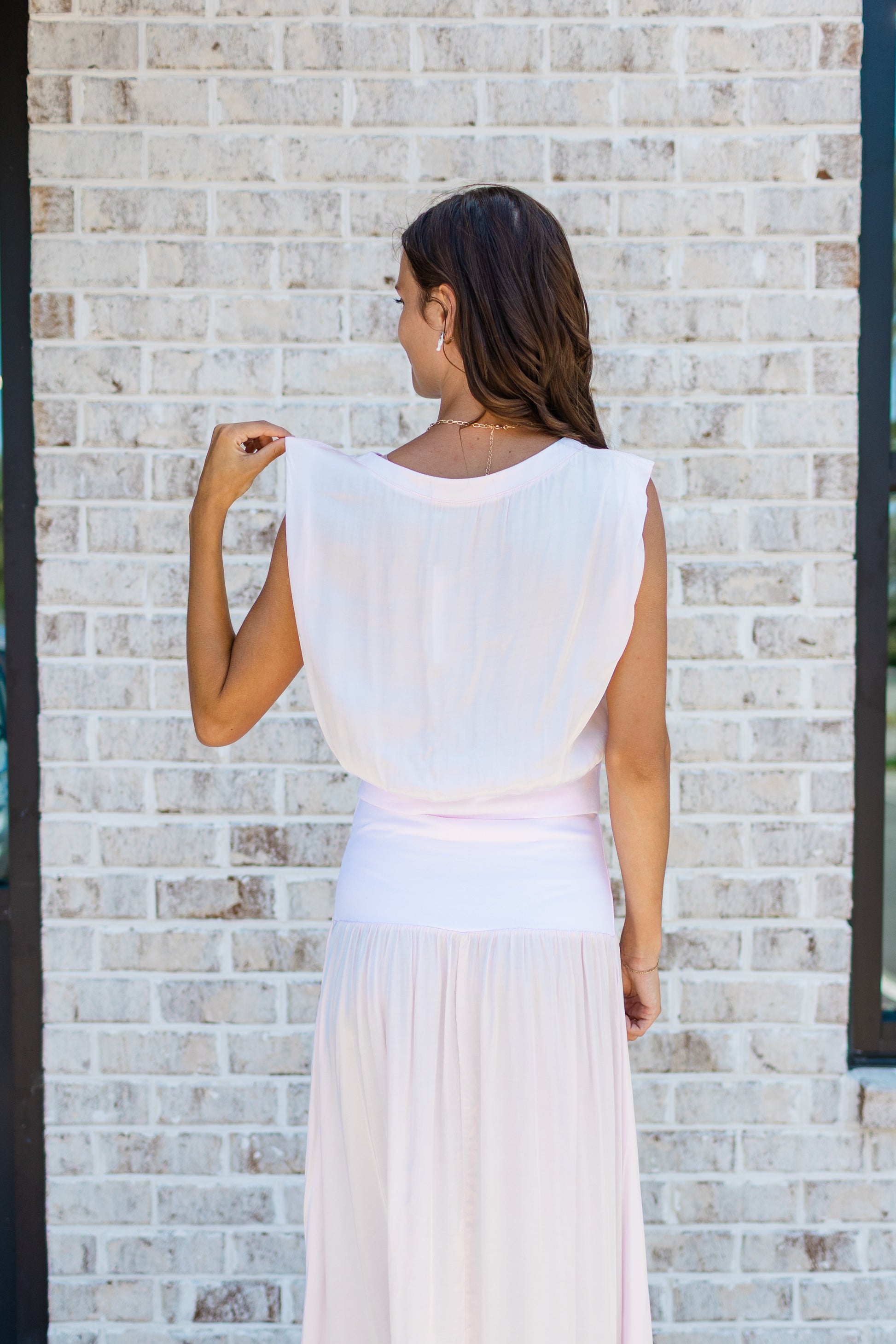 Light as air and effortlessly elegant the Champagne Rose Set features a soft blush hue, billowy silhouette, and wide waistband for a flattering fit. Its flowy shape and sleeveless cut make it perfect for showers, luncheons, or romantic evenings. Delicate and dreamy — it floats with every step.