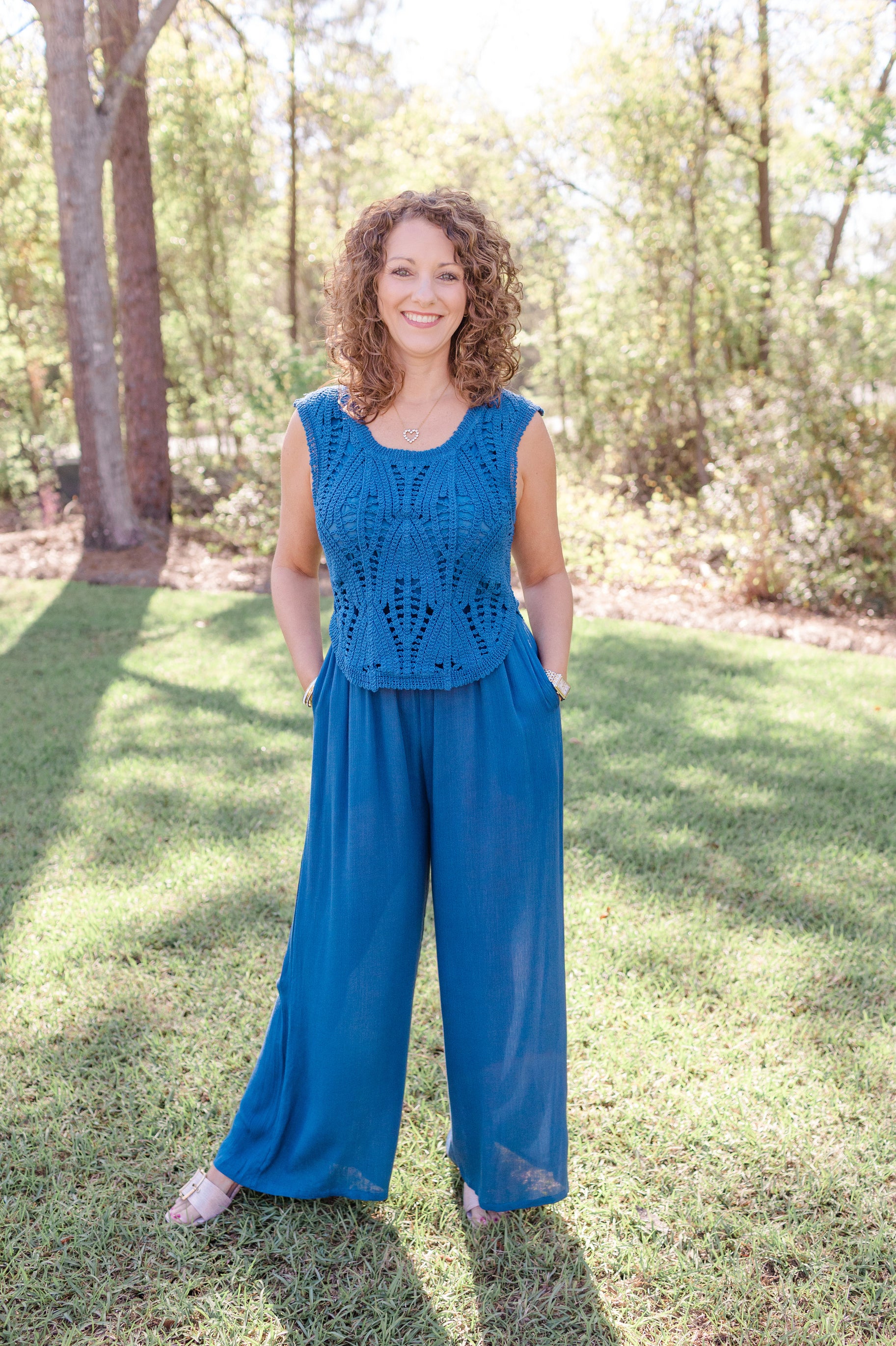 Lightweight and breathable, it’s perfect for warm days and transitional layering. The open-knit detailing adds visual interest while keeping the look soft and wearable, making it easy to dress up or down. Style it with wide-leg trousers, denim, or layered over a simple tank for an elevated, everyday look.