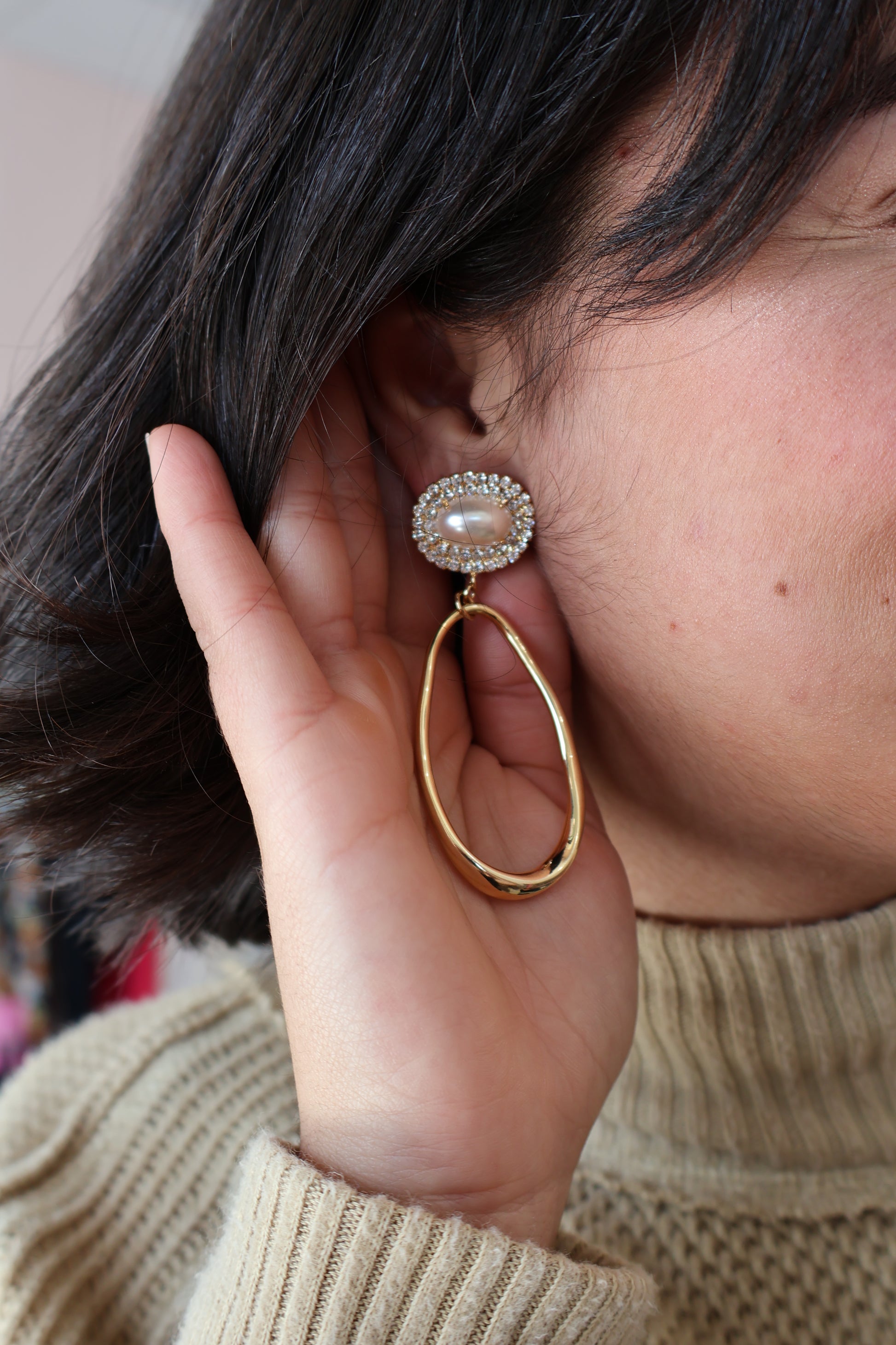 The Elegance Drop Earrings - Pearl feature a lustrous pearl at the ear, exuding timeless beauty. A dangling gold section follows, offering a graceful contrast to the soft glow of the pearl. These earrings bring a refined and classic elegance to any outfit.