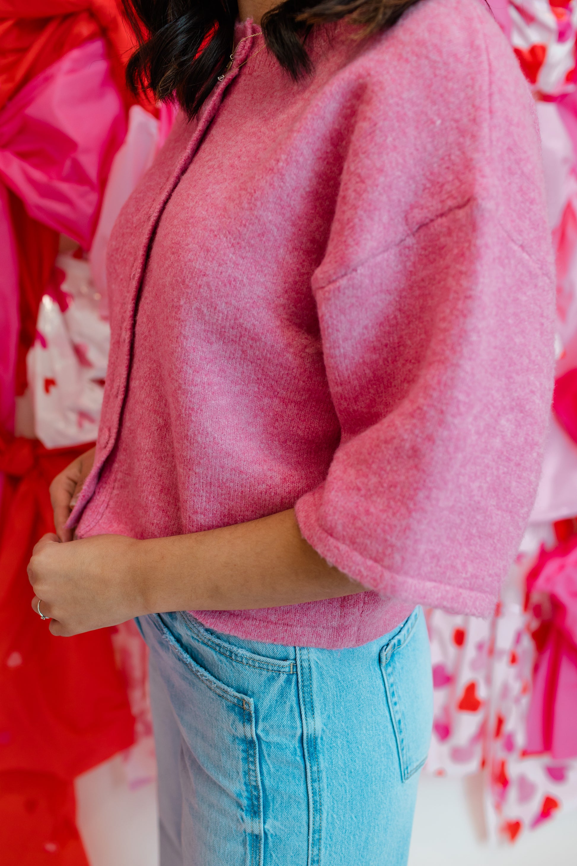 Soft, feminine, and effortlessly pretty — the Juliet is that sweet little knit you reach for when you want to feel polished without trying. The textured button detailing and relaxed, boxy silhouette give it that charming, understated elegance, while the rosy hue adds just the right touch of romantic warmth. Pair it with denim or dress it up for brunch… it’s one of those tops that simply feels lovely the moment you slip it on.