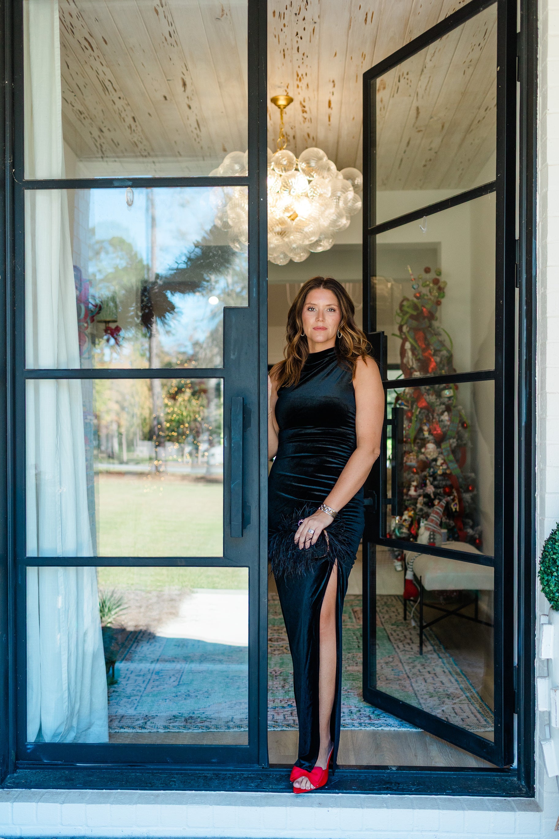 Undeniably elegant, The Carnegie Gown is a velvet evening dress that feels timeless and refined. The high neckline and gathered waist create a long, clean line, while the front slit adds fluid movement. A comfortable, confident, quietly glamorous look for truly special occasions.