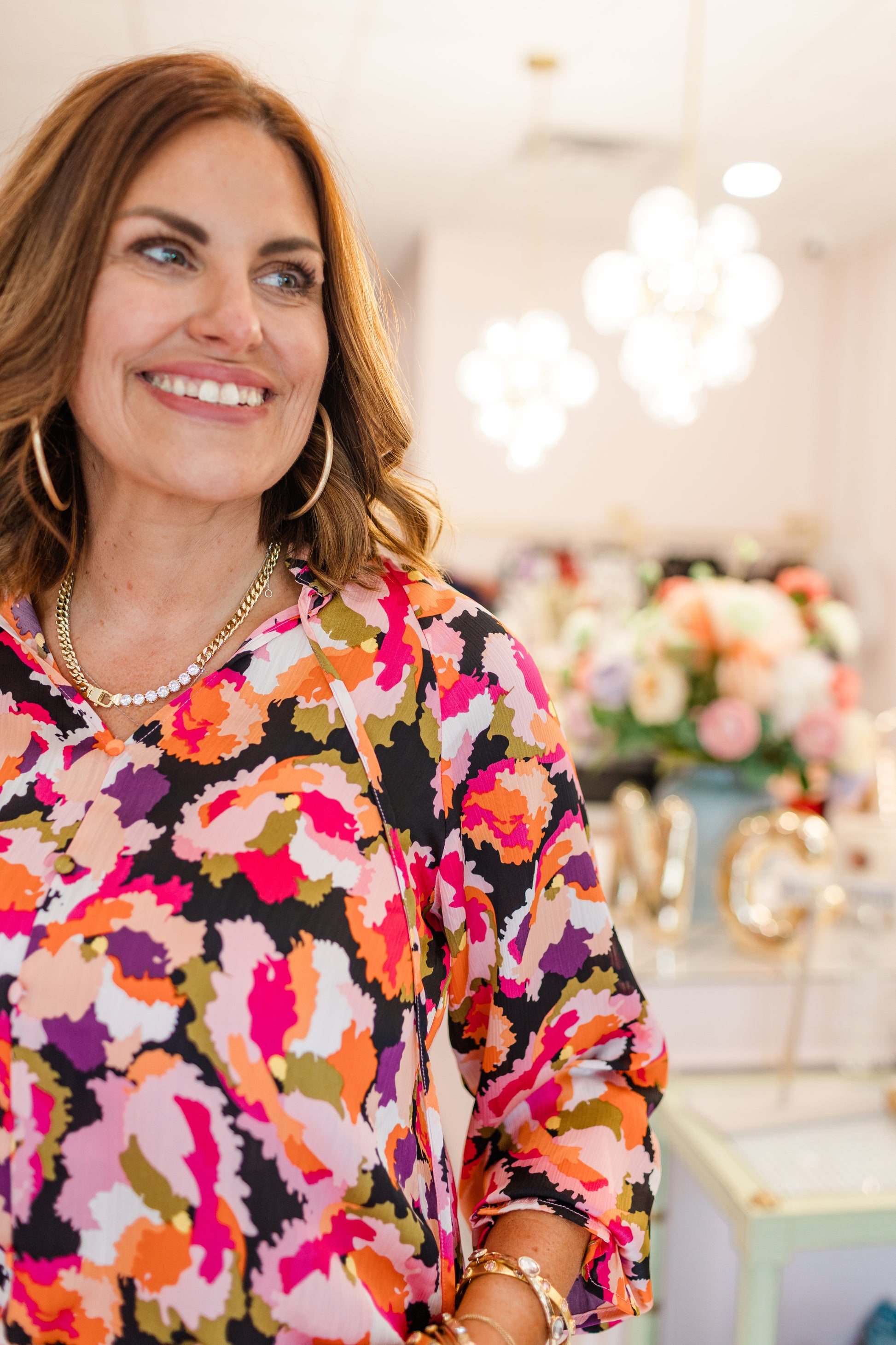A kaleidoscope of color and boho charm, this bright print blouse knows how to make an entrance. Lightweight and airy, it features short puff sleeves, a relaxed fit, and a flattering split neckline with tassel ties. The bold mix of pinks, blues, and greens makes it just as perfect with white denim in warm weather as it is layered under a blazer when fall finally decides to show up.