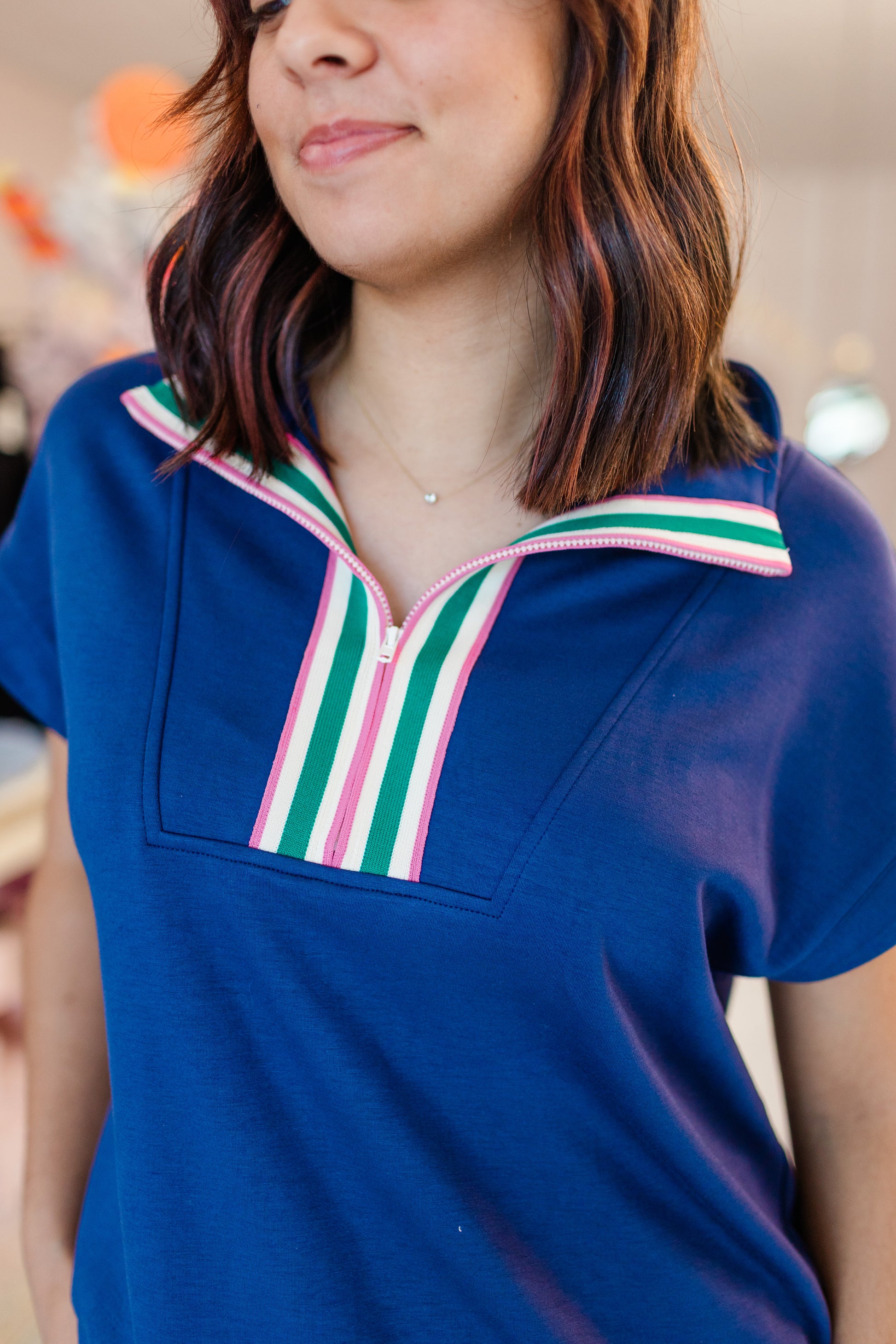 Effortless leisure with an elevated twist. This two-piece set blends comfort and polish, featuring a half-zip top and wide-leg pant with contrast stripes. The navy base and bold detailing make it versatile enough for lounging at home or stepping out in style.