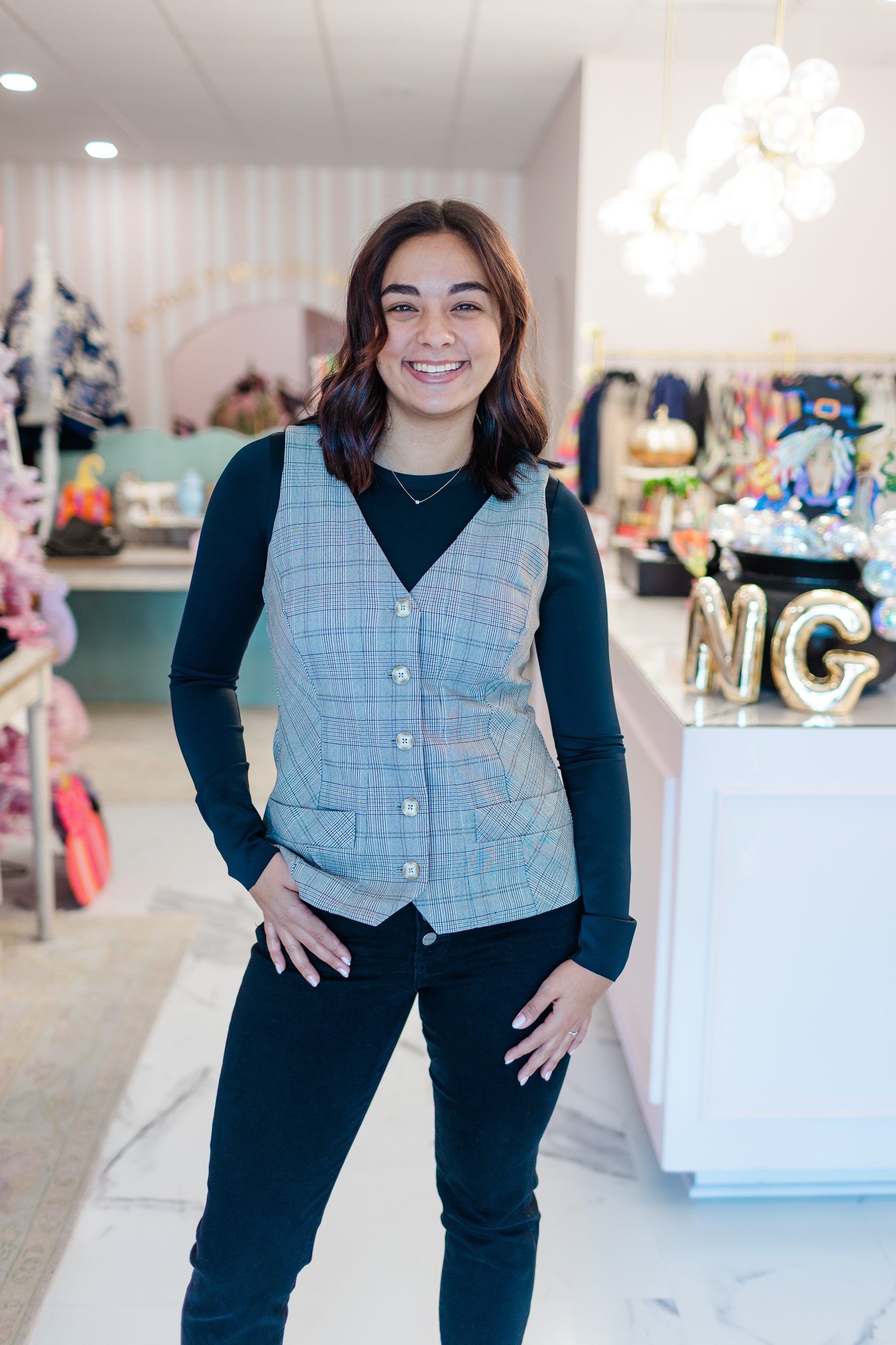 Smart, structured, and quietly sophisticated — The Winslow Vest brings polished charm to every fall layer. Designed by Good American in a classic plaid with soft tailoring, it blends timeless structure with effortless versatility. Style it over crisp blouses or cozy knits for that refined, countryside-meets-city polish. A luxe designer piece — now offered at an approachable Natalie Grace price.